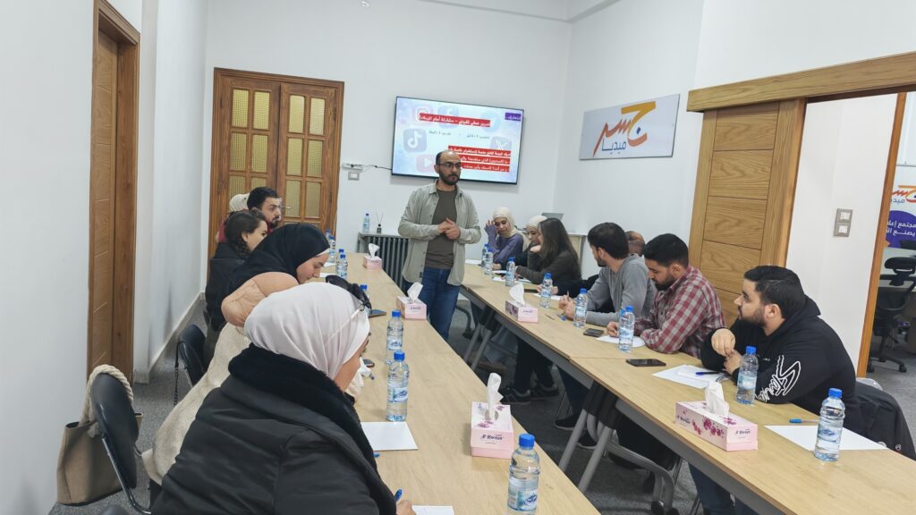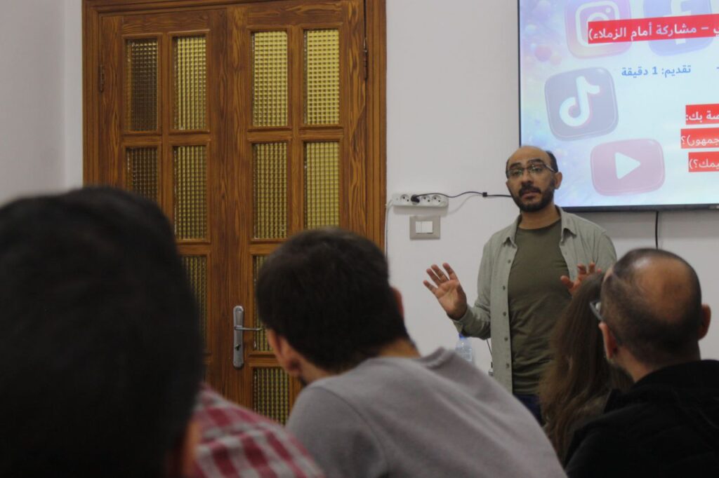 وقدّم اليوم التدريبي الأول الأستاذ سعدي أبو شعيرة، المتخصص في الإعلام الرقمي والكتابة للسوشال ميديا، والمحاضر السابق في جامعة دمشق، حيث تناول مع المشاركين أسس كتابة المحتوى المؤثر لمنصات التواصل الاجتماعي، وأبرز الفروقات بين أنواع المحتوى، إضافة إلى استراتيجيات شدّ انتباه المتلقي وصياغة رسائل اتصالية فعّالة.